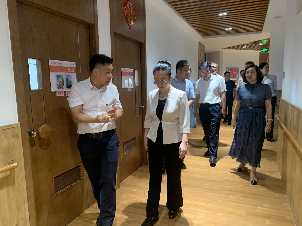 随后,领导一行来到鱼忆认知症长者照护中心,详细了解鱼忆机构打造的“开放式”照护模式,查看机构内的适老化建设和智慧养老建设,对“开放式认知症专业照护”理念和运营情况给予赞扬。