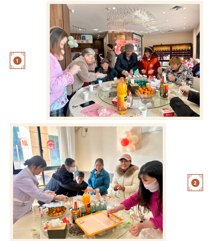随后,活动进入了温馨的互动环节。在工作人员的引导下,长者与家属们一起动手制作饺子。大家一边包饺子,一边聊天,现场欢声笑语不断。这一环节不仅锻炼了长者的动手能力,也让他们感受到了家的温暖和亲人的陪伴,不仅是一次互动,更是一份回忆与传承。