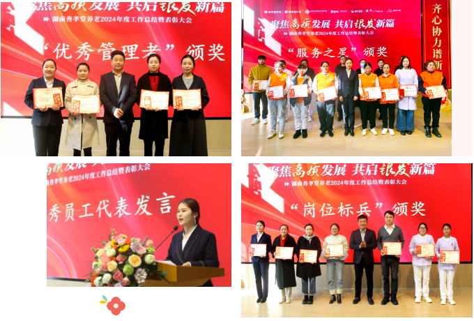 随后,公司两位副总经理分别进行了工作汇报。周总就机构运营和中医板块的发展进行回顾,柳总则围绕社区居家板块和宁乡项目的阶段性成果进行阐述。两位领导详细分析了当前养老市场的形势,总结了公司在服务创新、市场拓展、人才培养等方面的经验和教训,并提出2025年度的工作目标和具体措施。报告内容详实、思路清晰,赢得了与会人员的阵阵掌声。